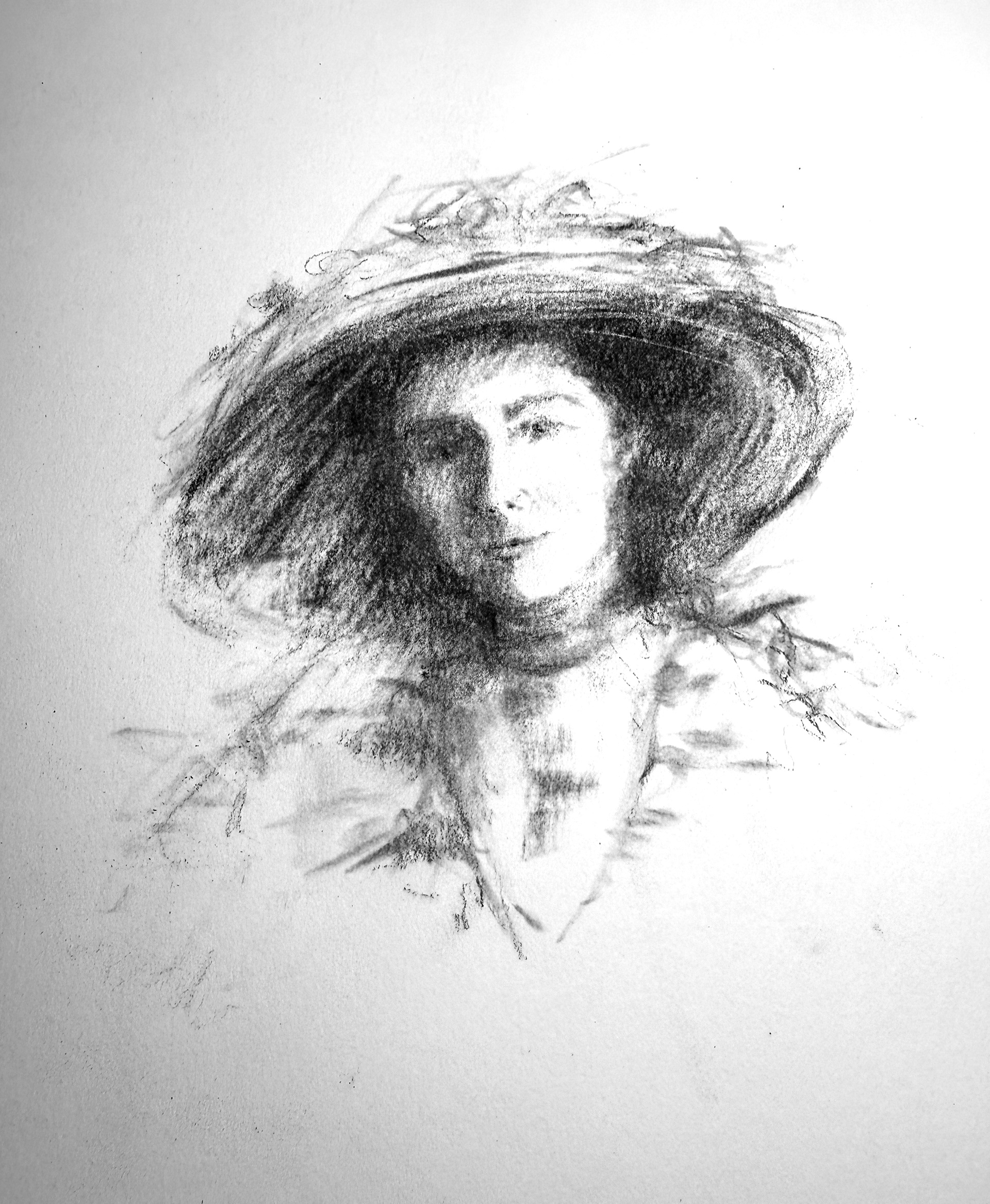 "Lady With A Hat" 11" x 14" charcoal on legion paper
